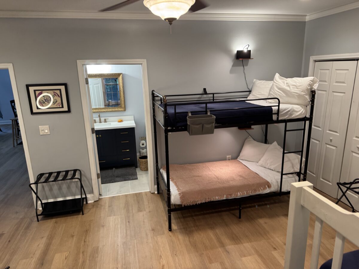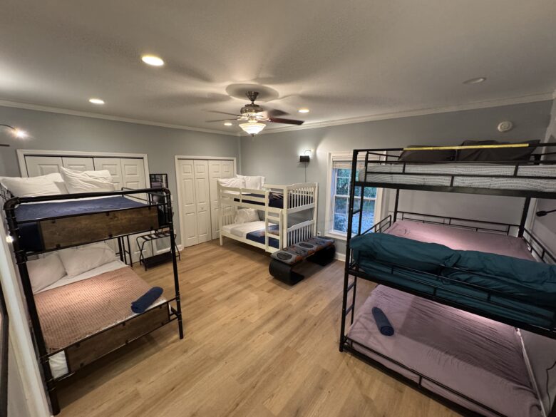 Welcome to Restoria Hostel, a forest retreat just minutes from downtown Atlanta and the Beltline. This twin size bed in our safe & secure backyard cabin home hosts a SHARED LADIES ONLY room that hosts a total of 10 ladies total. This LADIES ONLY DORM has its own digital safety lock. This dorm room is inside a CO ED House. This shared but safe space for ladies offers its own in suite shared bathroom for and privacy with your own personal view of the volleyball court and access to all the shared spaces including a pool, pavilion, backyard house and koi pond. After 8 years of hosting, I’ve designed this retreat for travelers to rest, relax, and restore before their next adventure.