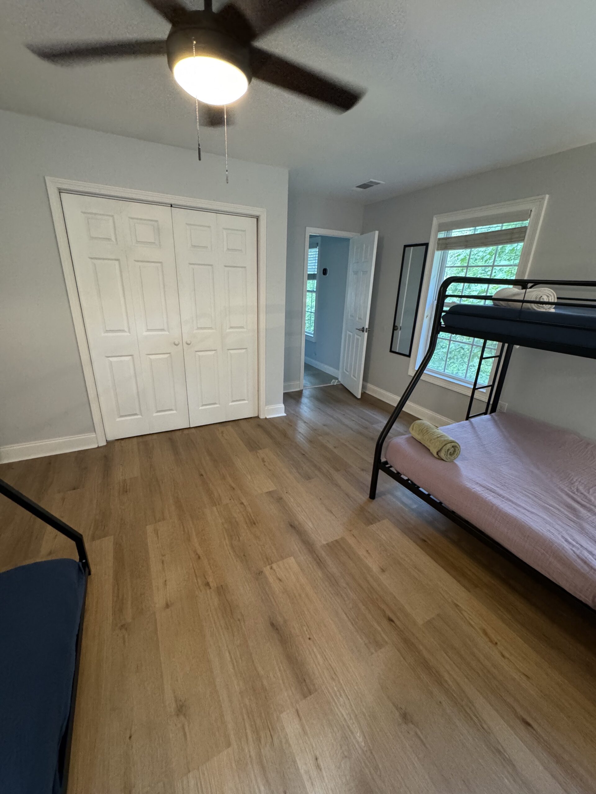 Welcome to Restoria Hostel, a forest retreat just minutes from downtown Atlanta and the Beltline. This full size bed in our safe & secure backyard cabin home hosts a SHARED LADIES ONLY room with a digital safety lock inside a CO ED House. This shared but safe space for ladies offers its own in suite shared bathroom for and privacy with your own personal view of the volleyball court and access to all the shared spaces including a pool, pavilion, backyard house and koi pond. After 8 years of hosting, I’ve designed this retreat for travelers to rest, relax, and restore before their next adventure.