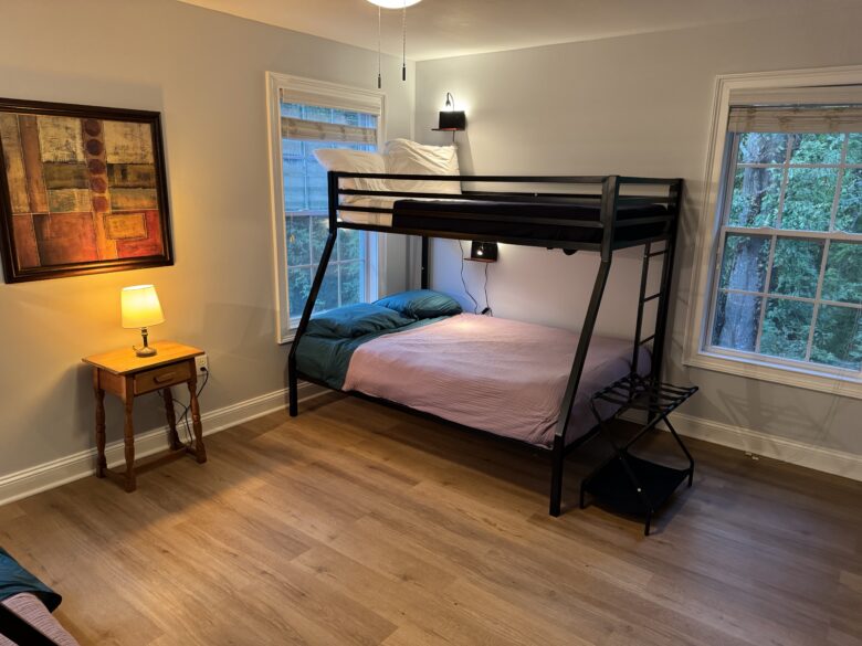 Welcome to Restoria Hostel, a forest retreat just minutes from downtown Atlanta and the Beltline. This twin size bed in our backyard cabin home hosts a SHARED MIXED GENDER room that offers comfort, peace, and privacy with your own personal view of the pool and access to all the shared spaces including a pool, pavilion, backyard house and koi pond. After 8 years of hosting, I’ve designed this retreat for travelers to rest, relax, and restore before their next adventure.